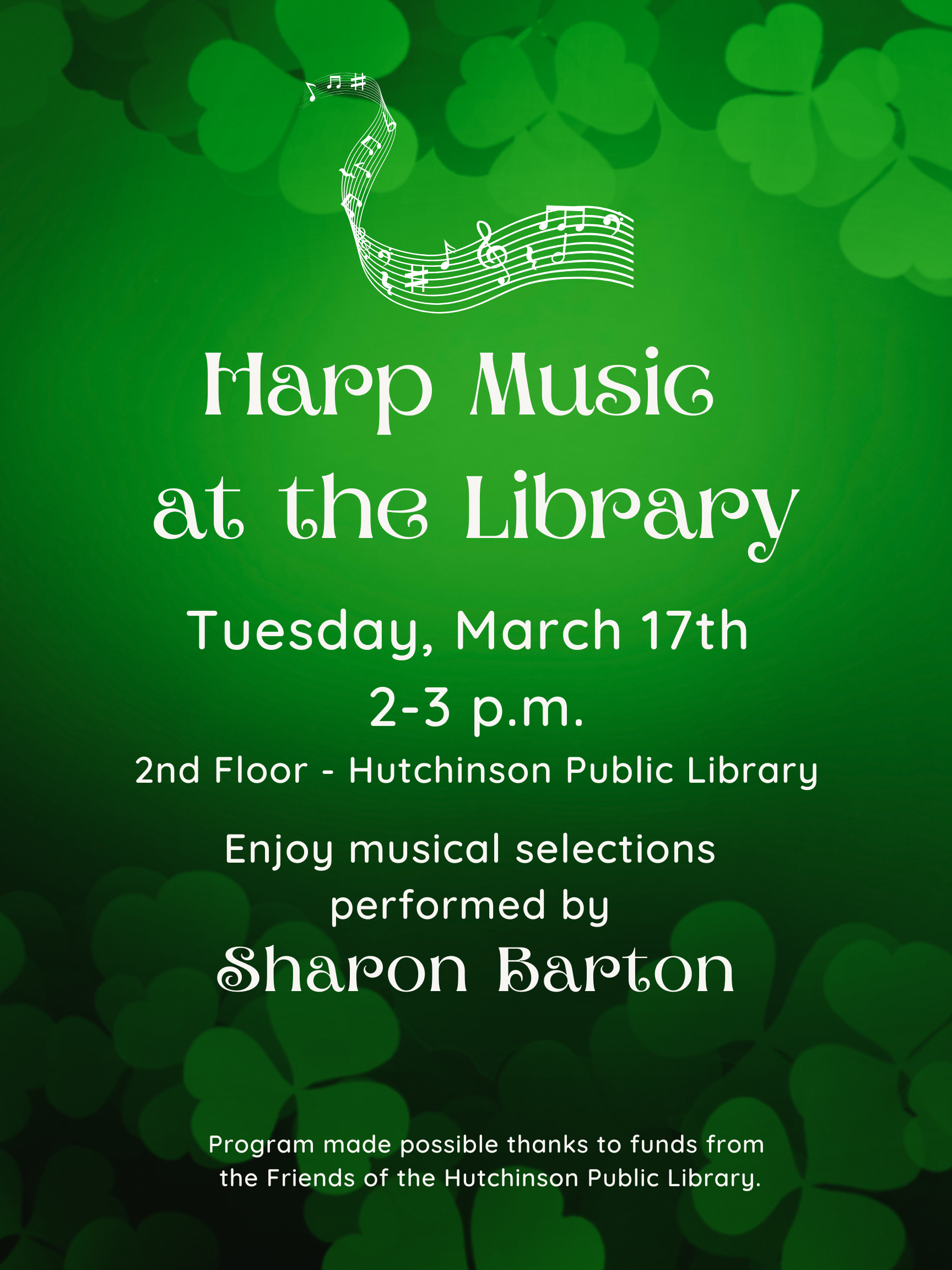 We’re looking ahead to next month and are so excited to bring Sharon Barton back for an afternoon of harp music! ☘ 🎶